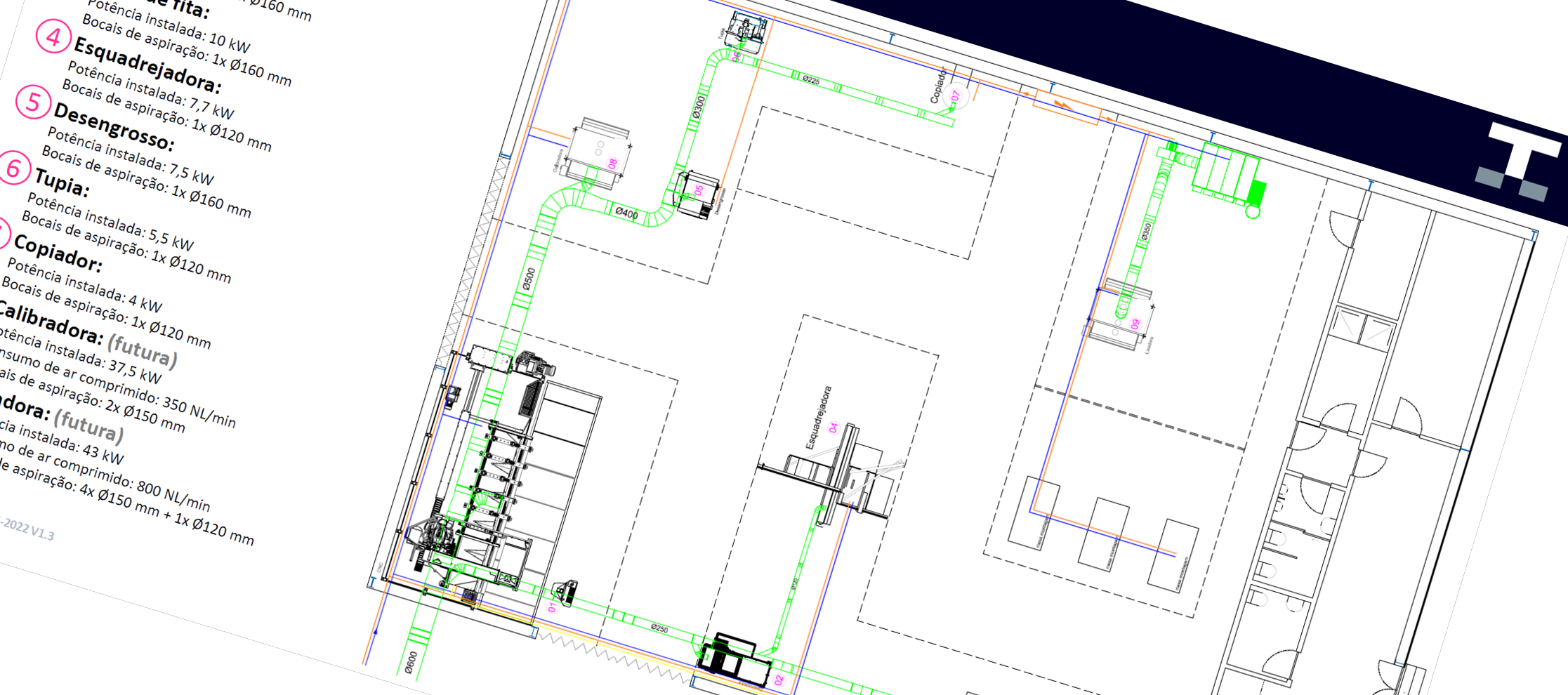 Uma vez definido o layout simples, torna-se imperativo definir o layout de todos os meios técnicos, desde aspiração, ar